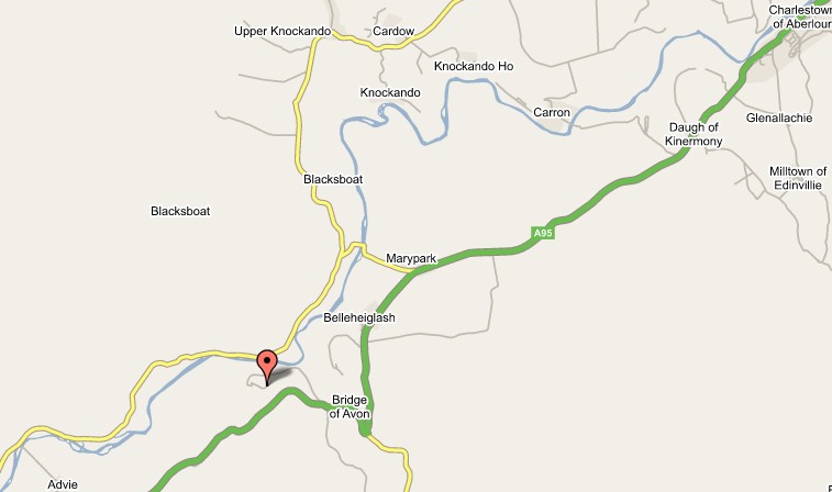 From Edinburgh & Glasgow, follow A9 north through Perth as far as Aviemore. Turn on to A95 for 24 miles to the turning on